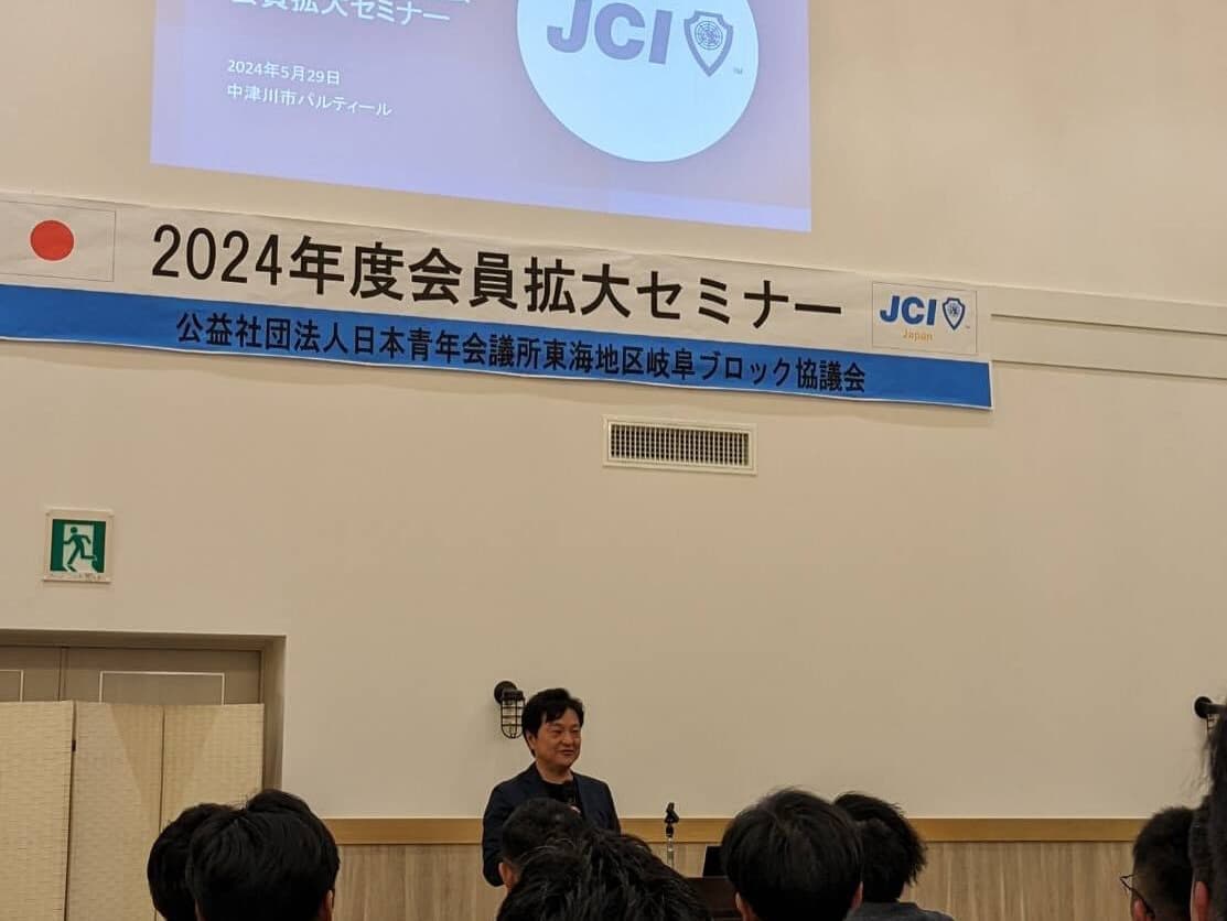 5月29日中津川で岐阜ブロック協議会会員拡大セミナーが開催されました。セミナーでは中津川青年会議所OBである三尾泰一郎様の講話を聞きました。各地青年会議所メンバー一人ひとりがJCメンバーであることを誇りに思い、地域の課題解決に向けて愚直に突き進むことこそ会員拡大の第一歩であることを学びました。郡上青年会議所では現役メンバーと共に地域の課題解決や自己研鑽をするメンバーを募集しています。興味はあるけど知り合いがいない。。。そもそもどんな団体なのか分からないけどちょっとおもしろそう。。。そんな方はぜひ一度ご連絡ください!どんなことをしているのか、どんな団体なのかしっかりと説明いたします。