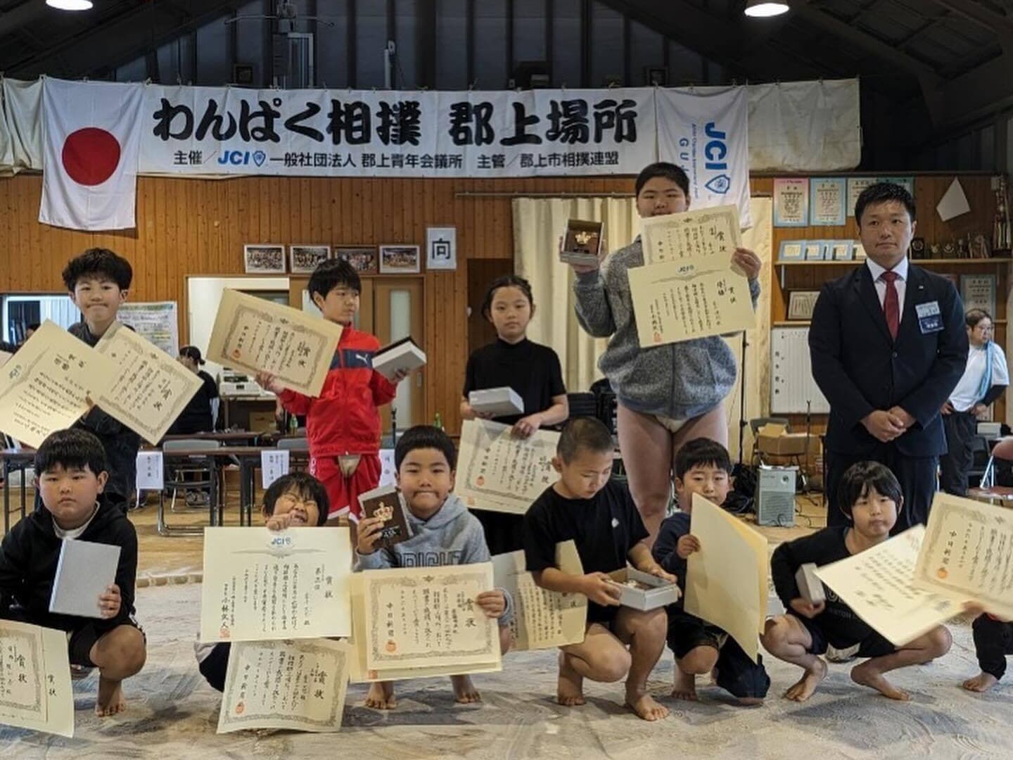 郡上地域、関地域、岐阜地域より勝ち進んだわんぱく力士たちによる白熱した戦いが繰り広げられました郡上チームは全国には惜しくも出場できませんが、勇気を持って挑戦する姿勢に多くの人が心を打たれましたこの経験を通じて子供達には大きく成長していってもらいたいと思います