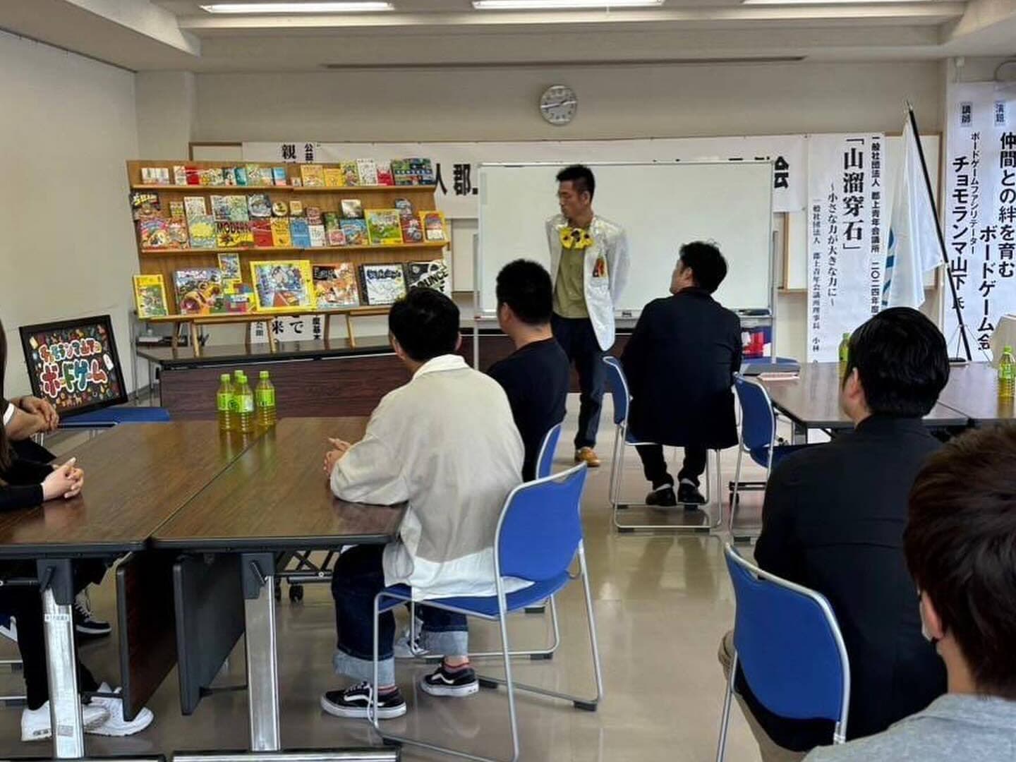 4月27日、郡上出身のボードゲームファシリテーターであるチョモランマ山下様をお招きし、仲間との絆を育むボードゲーム会を開催致しました。ボードゲームは近年遊びだけではなく、企業のチームビルディング研修など様々な場面で活用されております。実際やってみるとボードゲーム中にはクリアを目指すべく、お互いに声を掛けながら助け合ったり、あまり話が出来ていなかった会員同士がボードゲームを通して会話をしたりと約3時間の時間があっという間に感じるほど楽しい時間となりました。今回の例会は、楽しみながら会員同士の理解を深めたり、強い仲間意識を持ち、助け合いが出来るような環境づくりのキッカケとなる素敵な例会となったのではないかと思います。最後になりますが、ご協力頂きましたチョモランマ山下様ありがとうございました。