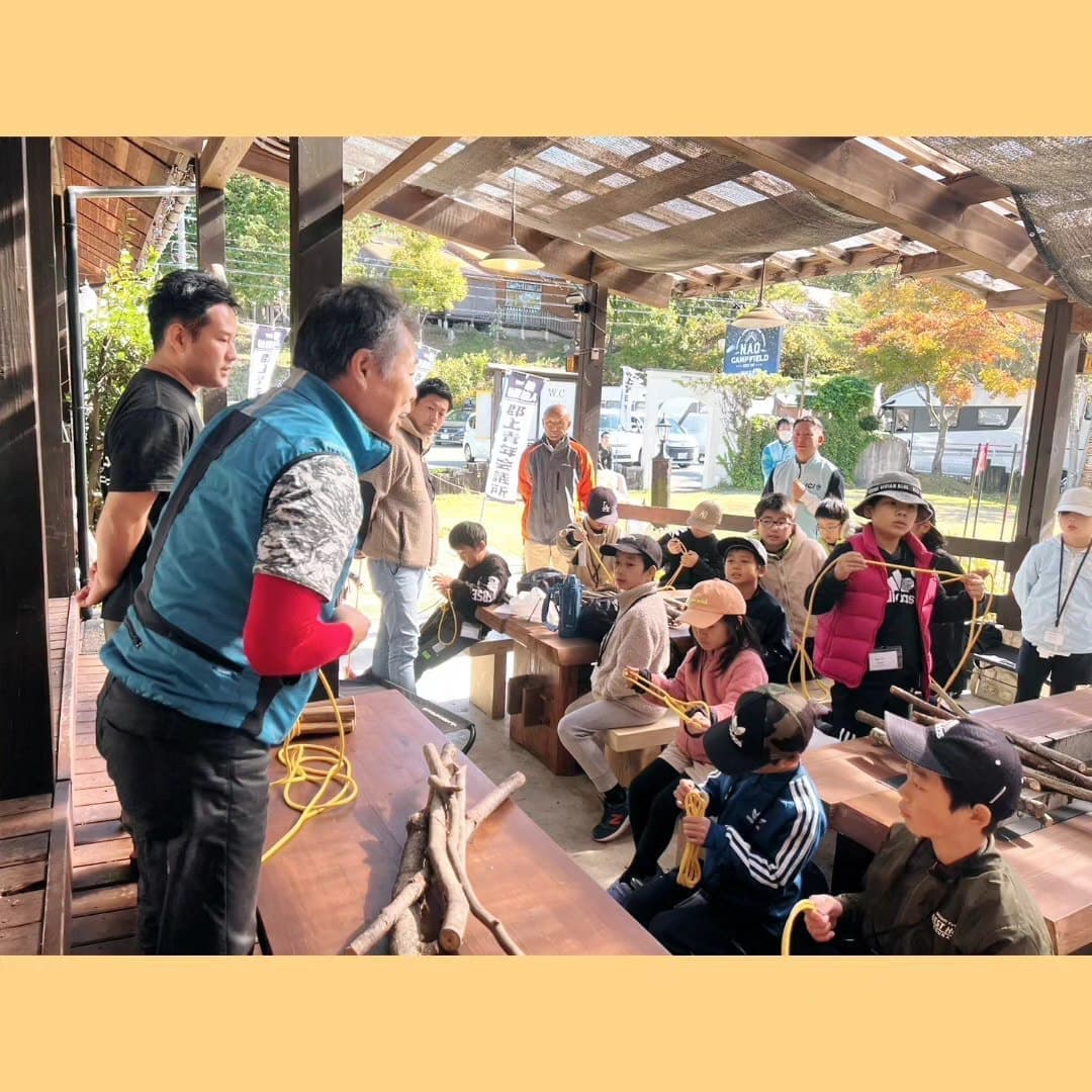 当日は元気いっぱいの市内の小学生が参加してくれました。講師に川尻秀樹様(火おこし、ロープワーク体験)、北山徳宏様(防災ワークショップ)をお呼びして普段の学校生活ではなかなか学ぶことができない、生きるために必要な知識を学べました。