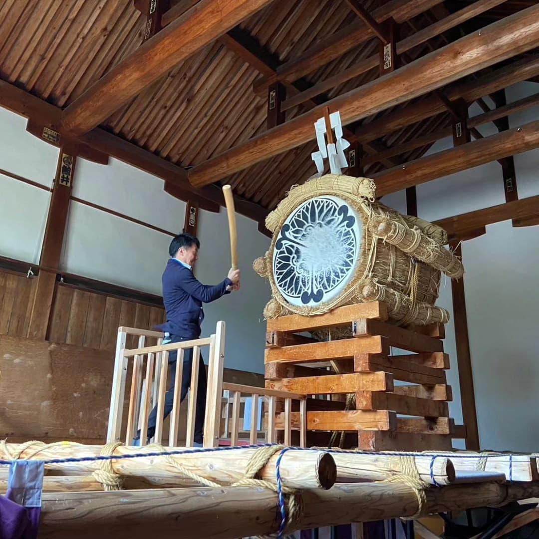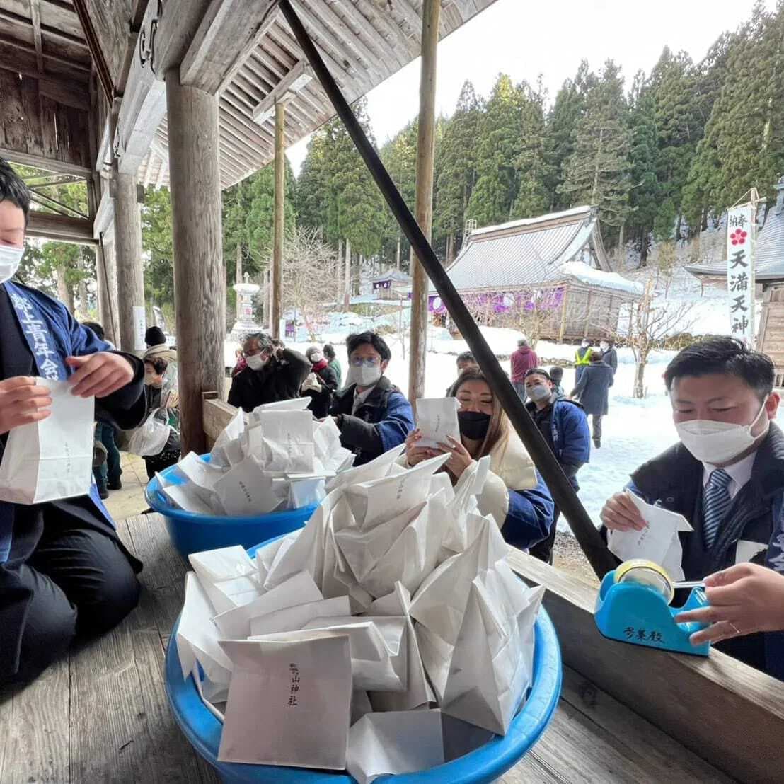 またお昼からは3年ぶりに開催された六日祭りにも参加しました。厳かな空気の中、大変多くの方が神事を見守っていました。お菓子配りのお手伝いもさせていただき貴重な体験ができました。