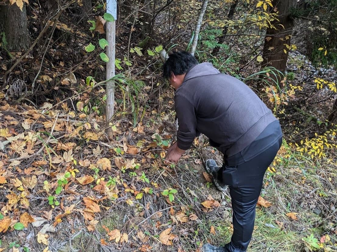 本年も参加したメンバーとともにJCの森を次年度以降へ引き継ぐため、場所や現状を確認し、JCの森へ入っていく道の草刈りや倒れていた杭などを打ち直すなど手入れを行ってきました。
