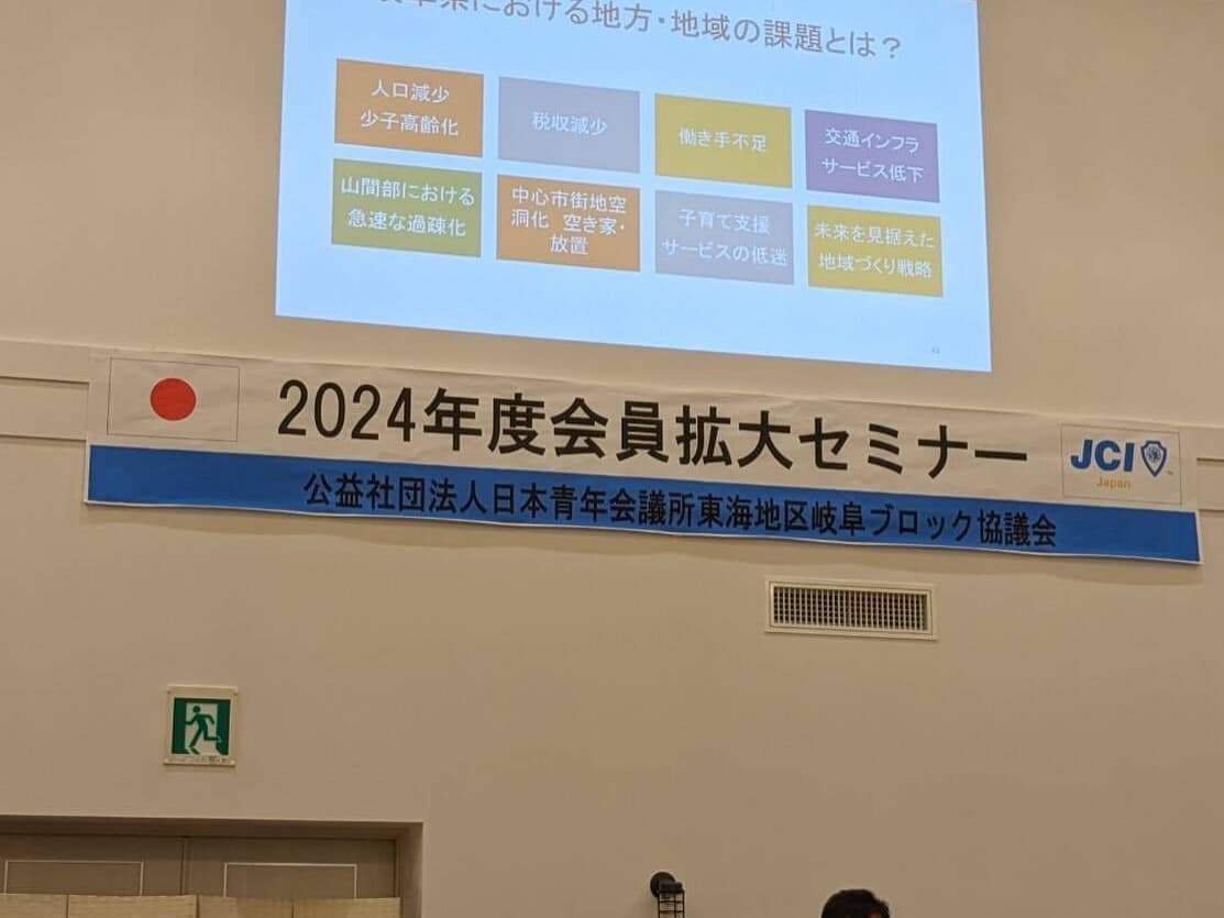 5月29日中津川で岐阜ブロック協議会会員拡大セミナーが開催されました。セミナーでは中津川青年会議所OBである三尾泰一郎様の講話を聞きました。各地青年会議所メンバー一人ひとりがJCメンバーであることを誇りに思い、地域の課題解決に向けて愚直に突き進むことこそ会員拡大の第一歩であることを学びました。郡上青年会議所では現役メンバーと共に地域の課題解決や自己研鑽をするメンバーを募集しています。興味はあるけど知り合いがいない。。。そもそもどんな団体なのか分からないけどちょっとおもしろそう。。。そんな方はぜひ一度ご連絡ください!どんなことをしているのか、どんな団体なのかしっかりと説明いたします。